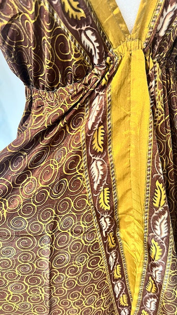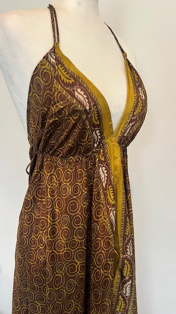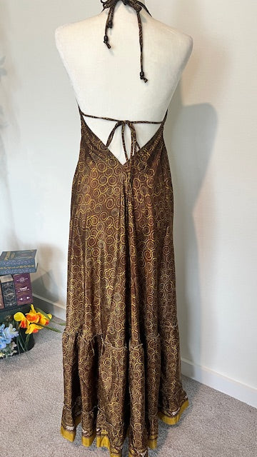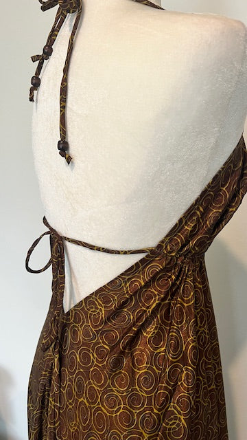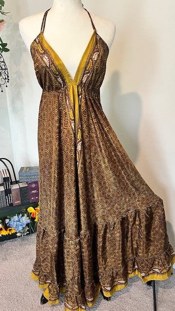 Super comfortable long dress with an adjustable waist. Ruffled detail on the skirt. One Size fits all